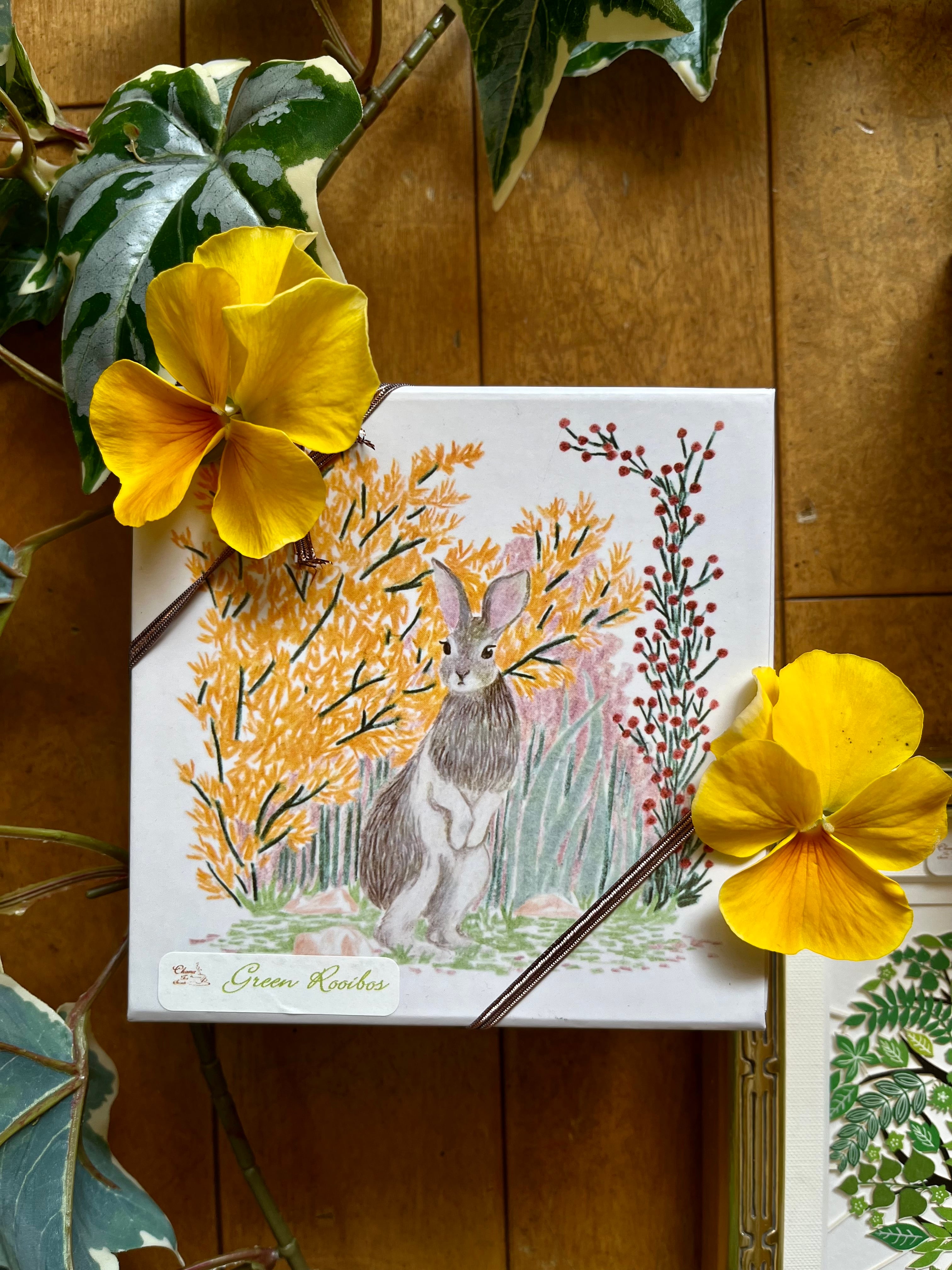 大変珍しい、未発酵のフレッシュなグリーンルイボスティーをオリジナルタグをつけて2.5gずつティーバッグにしました。